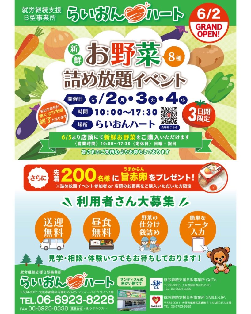 私たちの事業の第一目標は一つでも笑顔を増やすことです。それぞれの特性、個性を尊重した支援のもと得意なことをお仕事にしていきます。利用者皆さまのできる仕事、やりたい仕事がきっと見つかります。私たちはそのお手伝いをしていきます。