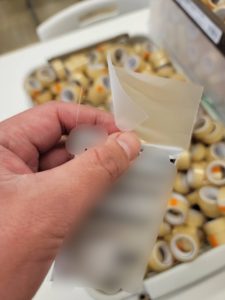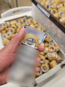 無事に検品が通ったセロハンテープをこの袋に2個ずつ入れていきます。