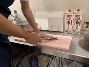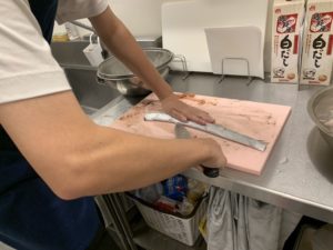 調理師免許を持っているスタッフが一生懸命に捌いてる様子です😆