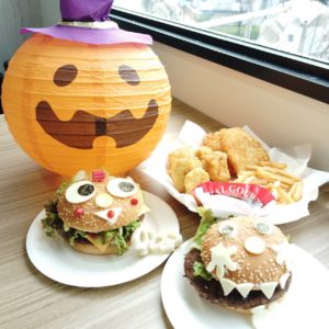 皆様思い思いの具材を自分で焼いてのせてオリジナルのハンバーガーを作って大変楽しいハロウィンになりました(o^^o)