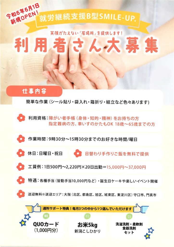 🌟就労継続支援B型事業所 SMILE-UP.です🌟 この度、SMILE-UP.のチラシ完成しました👏👏👏 チラシに記載されている内容を簡単に説明いたしますと、SMILE-UP.での[...]